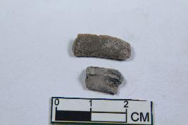 | Description / विवरण | Fragment of a blade with one dorsal ridge and a bulb of percussion on ventral side having smooth surface. Shorter fragment along with one dorsal ridge has length equivalent to 1.1 cm |