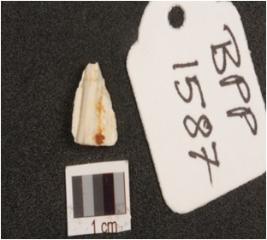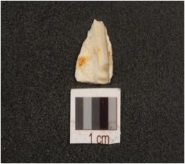 | Description / विवरण | A chert flake with a ridge on dorsal side, prepared platform and cutting edges. |