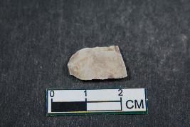 | Description / विवरण | Fragment of a blade with two dorsal ridges and a bulb of percussion on ventral side having smooth surface. |