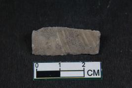 | Description / विवरण | A fragment of a blade having two dorsal ridges. It has smooth surface. |