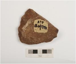 | Description / विवरण | A scraper made on quartzite end struck flake with flake scars on both sides, retouched edges and cortex partly intact. |