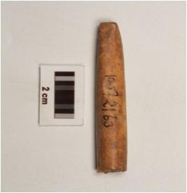 | Description / विवरण | Fragment of bone point, tapered towards pointed end, both ends broken, well polished and circular cross section. |