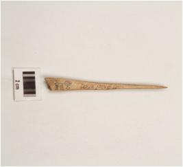 | Description / विवरण | A bone point with pointed one end, other end flat broad and slightly damaged, well polished and rectangular cross section. |