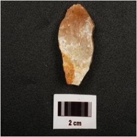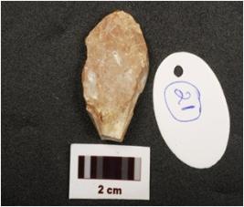 | Description / विवरण | A side scraper made on end struck flake with smooth surface bulb on ventral and use wear marks on working edge. |