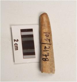 | Description / विवरण | Fragment of bone point, small in size, polished surface pointed end slightly damaged and other side broken. |