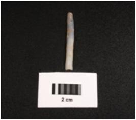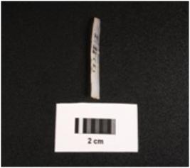 | Description / विवरण | Parallel sided microlithic blade with improminent double ridge on dorsal, trapezoid in section and use wear marks on cutting edges. |