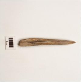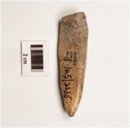 | Description / विवरण | Bone point with thick and flat surface, pointed one end, other end thick and a groove on other side. |