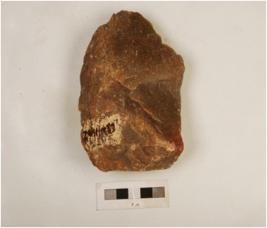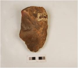 | Description / विवरण | A scraper, made on quartzite stone, irregular retoucher on edge and flaking marks on dorsal side. |