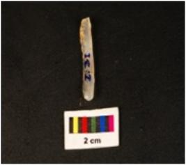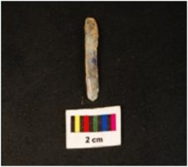 | Description / विवरण | Parallel sided microlithic blade with use wear marks on cutting edges, mid-ridge on dorsal, prominent bulb on ventral. triangular section. |