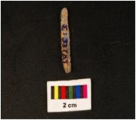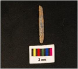 | Description / विवरण | Parallel sided blade with two ridge on dorsal, use wear marks on cutting edges, prominent bulb on ventral and trapezoidal section. |