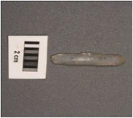 | Description / विवरण | Parallel sided blade with one wavy and another use wear marks on cutting edges, diffused bulb with striking platform at proximal end and distal end broken. |