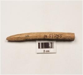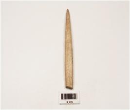 | Description / विवरण | Fragment of a bone point tapering towards a pointed end, plano-convex in section and broken along other end. |