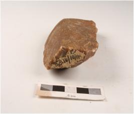| Description / विवरण | A quartzite miniature handaxe, made on end struck flake, flake scars on both sides and edges sharpened by soft hammer technique. |