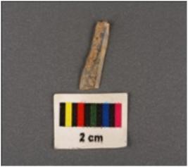 | Description / विवरण | Parallel sided microlithic blade with sharp cutting edges, ridges on dorsal surface, prominent bulb on ventral and broken distal end. |