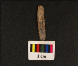 | Description / विवरण | Parallal sided chalcedony blade, mid ridge on dorsal, diffuse bulb on ventral and use wear marks on edges. |