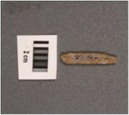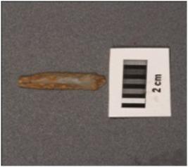 | Description / विवरण | Chalcedony parallel sided blade with on dorsal, a single ridge triangular section, regularly retouched edges and broken proximal end. |