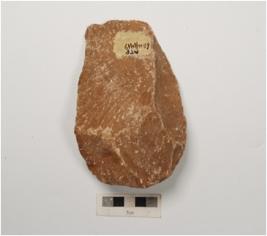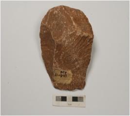 | Description / विवरण | A side scraper made on quartzite end struck flake with flake scars on both sides and use wear marks on cutting edges. |