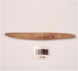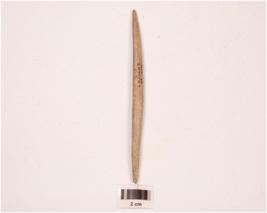 | Description / विवरण | A bone point with circular cross section, tapering pointed ends and polished and partly porous surface. |