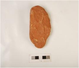 | Description / विवरण | A side scraper made on end struck flake with flake scars on dorsal side, prepared platform, diffused bulb on ventral side and regularly retouched edges. |