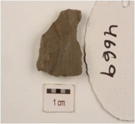 | Description / विवरण | Flake made on end struck chert flake, flake scars on dorsal surface, diffused bulb on ventral surface, use wear marks along cutting edges. |