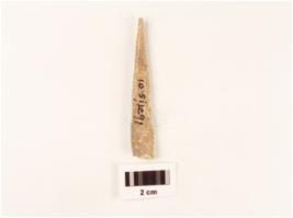 | Description / विवरण | A bone point, polished surface and pointed one end. |
