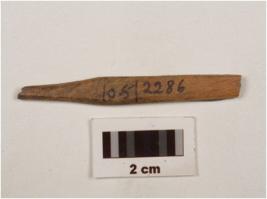 | Description / विवरण | Fragment of a bone point tapering towards pointed end, flat sides, rectangular in section and broken along other end. |