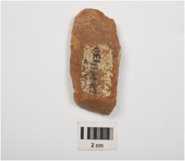 | Description / विवरण | A scraper made on quartzite flake, flake scars on dorsal side, retouched edges and prepared platform. |