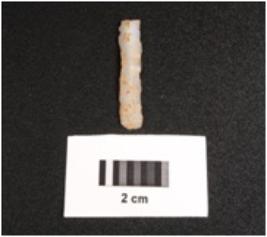| Description / विवरण | Parallel sided microlithic blade with prominent mid ridge on dorsal smooth ventral, use wear marks on cutting edges and triangular in section. |