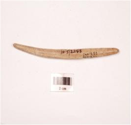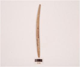 | Description / विवरण | A bone point with polished and partly porous surface, tapering towards both ends and tip broken. |
