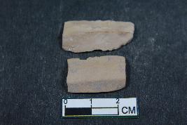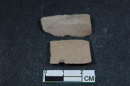 | Description / विवरण | Fragment of a blade with one dorsal ridge having smooth surface. Shorter fragment along with two dorsal ridges has length equivalent to 2.2 cm. |