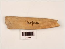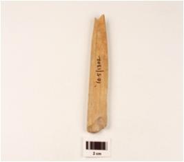 | Description / विवरण | A broken large bone point, polished surface, broken pointed end and smooth surface. |