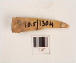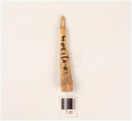 | Description / विवरण | A small bone point, polished surface and pointed end. |