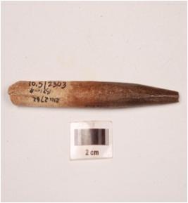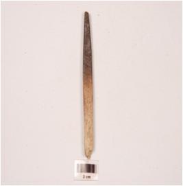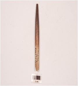 | Description / विवरण | A charred bone point with tapering end, broken from both end, polished surface and plano-convex cross section. |