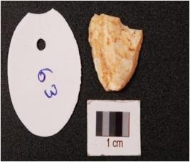 | Description / विवरण | A chert flake with a prepared platform and diffused bulb on ventral side. |