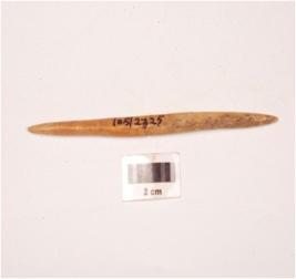 | Description / विवरण | Bone point tapering towards pointed ends, smooth and polished surface on one side and other is grained. |