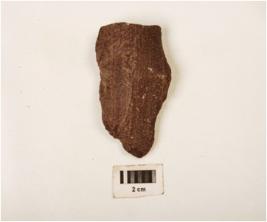 | Description / विवरण | A side scraper on end struck flake with ripple marks, irregular retouches and prepared platform. |