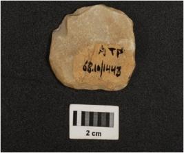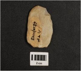 | Description / विवरण | A side scraper made on quartzite flake, flake scars on dorsal side, prominent bulb on ventral retouched edges and prepared platform. |