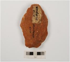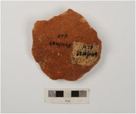 | Description / विवरण | A flake made on a core with flake scars on both the sides and retouched edges. |