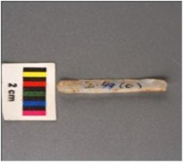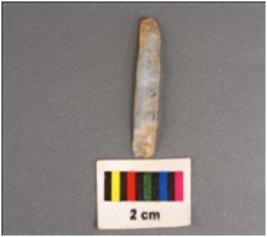 | Description / विवरण | Parallel sided microlithic blade with use-wear marks on cutting edges, prominent mid-ridge on dorsal and prominet bulb on ventral. |