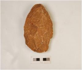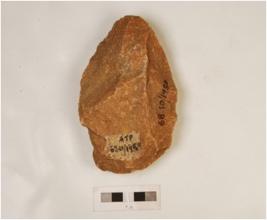 | Description / विवरण | A scraper, made on quartzite stone, flaking marks on both sides and irregular retoucher on edges. |