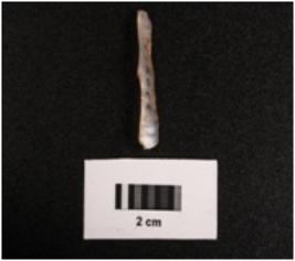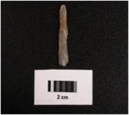 | Description / विवरण | Microlithic blade on chalcedony, two ridge on dorsal, irregular edges and flat ventral. |