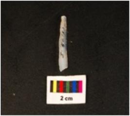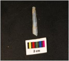 | Description / विवरण | Parallel sided microlithic blade with wear marks on cutting edges, mid ridge on dorsal diffused bulb on ventral and triangular in section. |