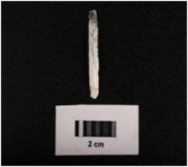 | Description / विवरण | Parallel sided microlithic blade with two ridges on dorsal diffused bulb on ventral and use wear marks on the cutting edges. |