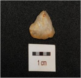 | Description / विवरण | Quartz stone scraper with sharp working edges and flake scars visible on surface. |