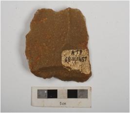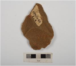 | Description / विवरण | A side scraper made on quartzite end struck flake, flake scars on dorsal side, retouched edges and prominent bulb on ventral. |