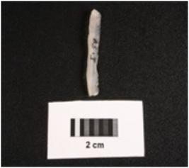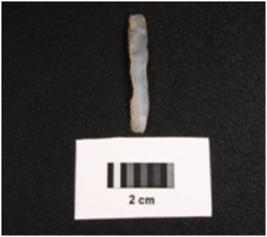 | Description / विवरण | Microlithic blade on chalcedony prominent mid ridge on dorsal, triangular in section, use wear mark along the cutting edge and smooth ventral. |