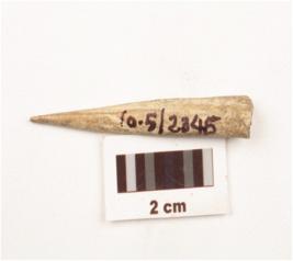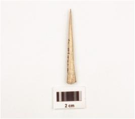 | Description / विवरण | Fragment of a bone point tapering towards pointed end, smooth polished surface, rectangular in section and broken along other end. |
