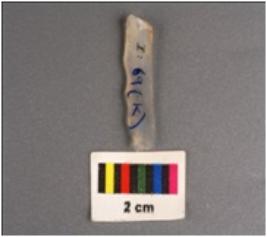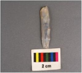 | Description / विवरण | Parallel sided microlithic blade with use-wear marks on cutting edges, ridges on dorsal and prominent bulb on ventral. |