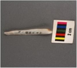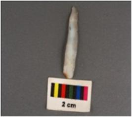 | Description / विवरण | Parallel sided microlithic blade with use wear marks on cutting edges, mid ridge on dorsal and prominent bulb on ventral. |