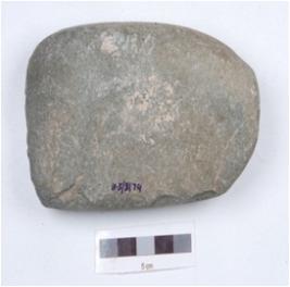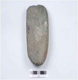 | Description / विवरण | A handaxe made on basalt, one end is broken, polished surface, round butt. |